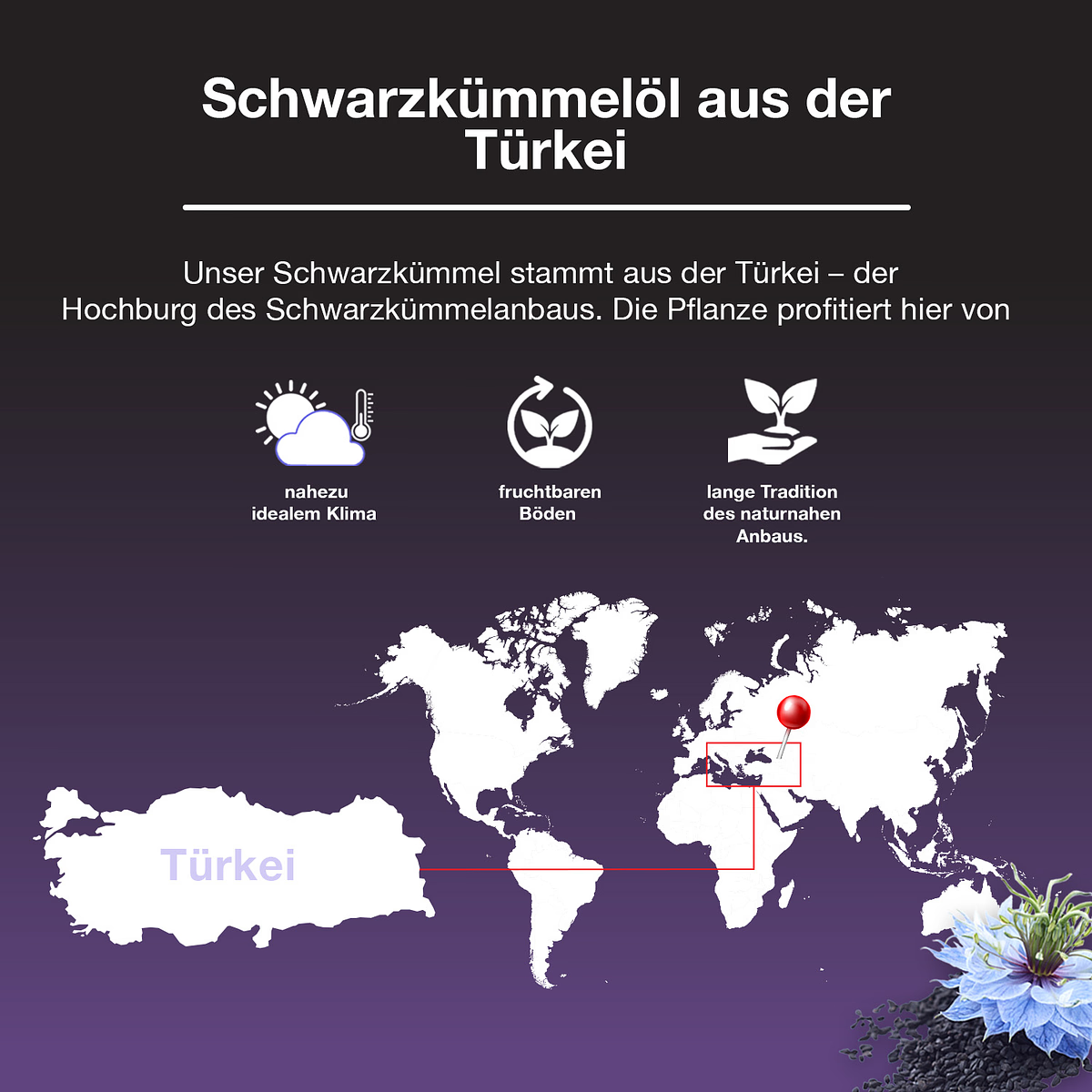 Schwarzkümmelöl wird seit Langem in verschiedenen Kulturen verwendet und enthält natürlich vorkommende Bestandteile wie Thymochinon. Als Teil einer ausgewogenen Ernährung kann es zur Ergänzung einer vielseitigen Lebensweise beitragen.